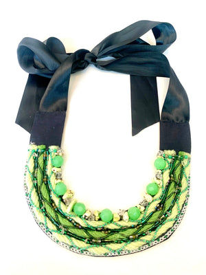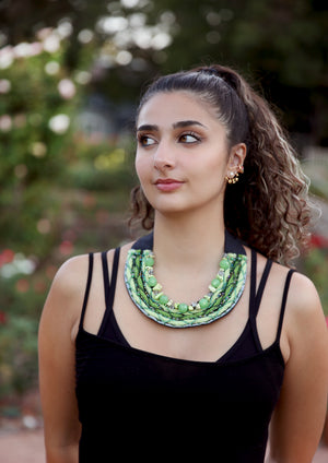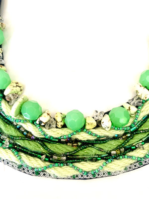 Green Chalcedony,Citron Magnesite, Clear Quartz Collar Necklace