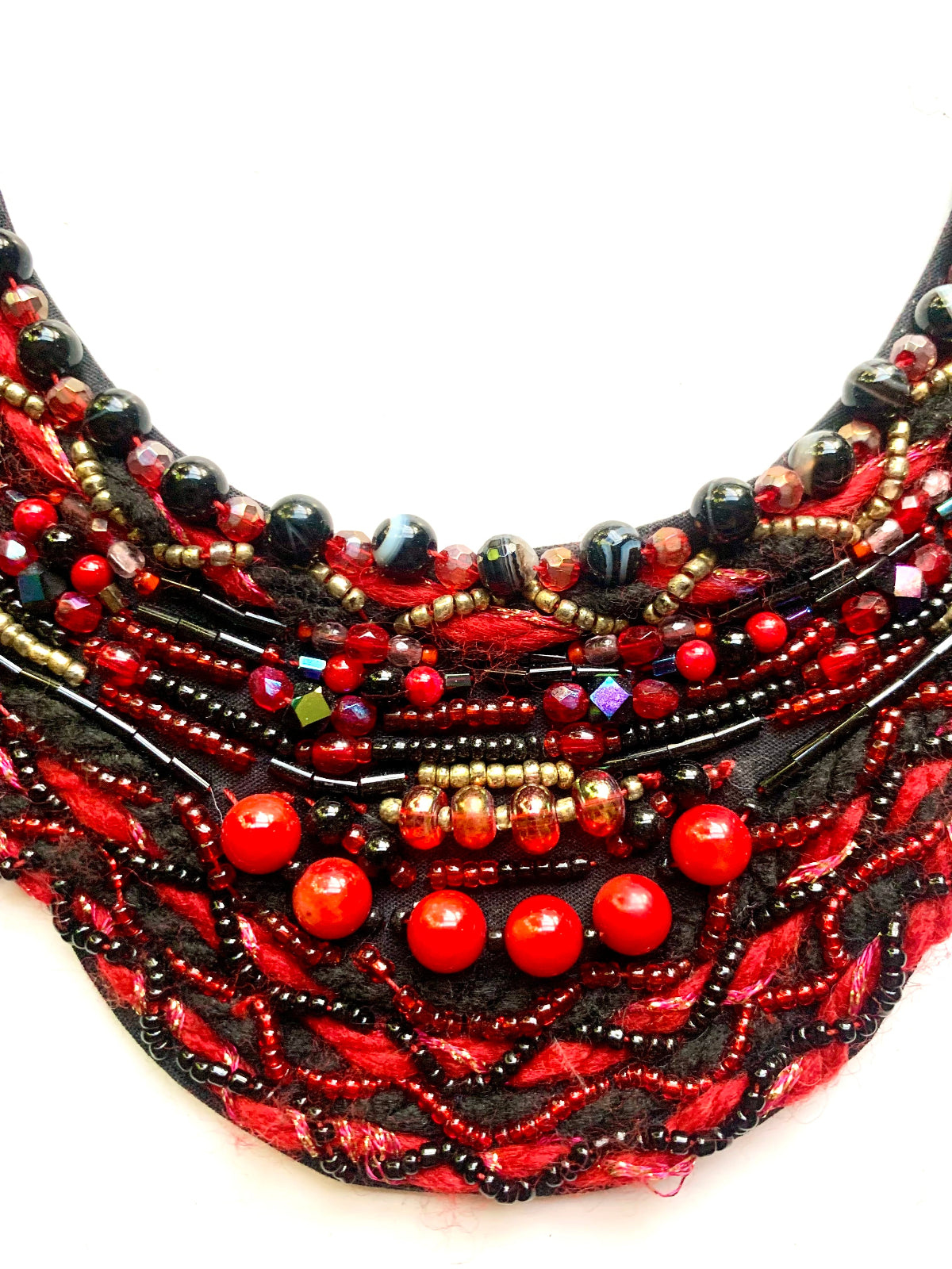 This piece is for a woman who blends elegance with edge and wants her jewelry to reflect the story she’s writing every day. Handmade through many focused hours, every bead is places with care and purpose.